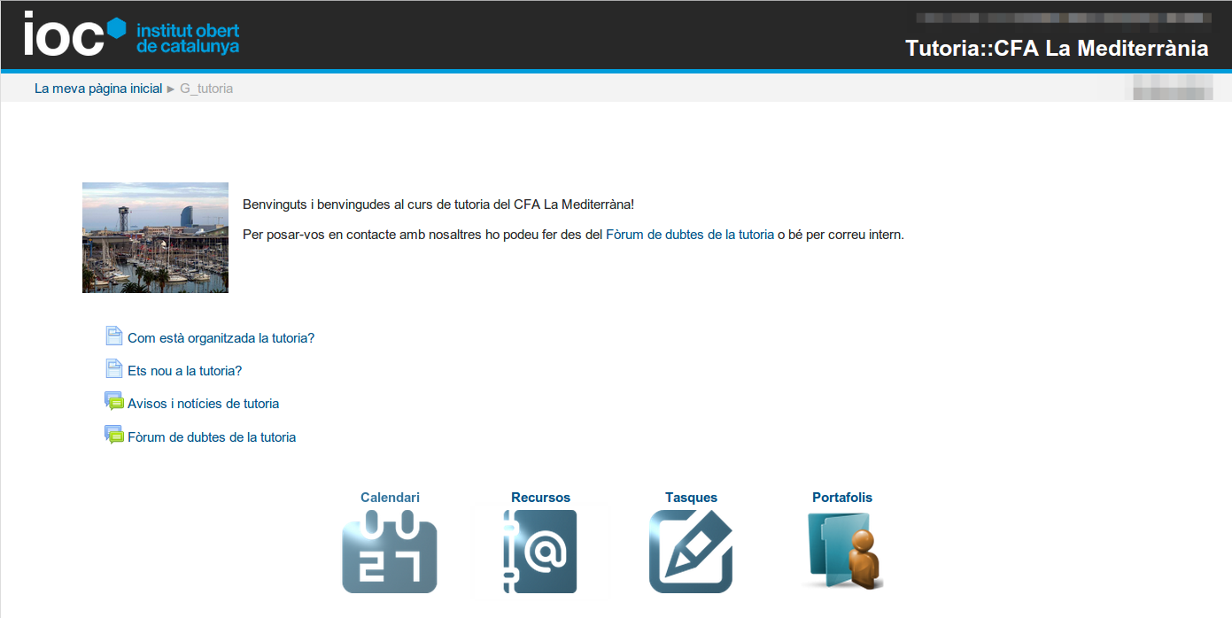 - Si sou estudiants de l’IOC-Barcelona, és a dir, us vàreu inscriure a la seu de l’Avinguda Paral·lel de Barcelona, a la pàgina d’inici del campus IOC teniu un curs amb el nom Tutoria::Nom Persona Tutora. Fent clic sobre aquest nom accediu al curs de Tutoria.
