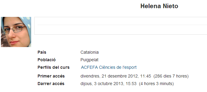 La primera vegada que entreu al campus IOC trobareu tot el perfil completat excepte la imatge que us identifica i la descripció. És important que quan comenceu a treballar al campus hàgiu completat el vostre perfil personal.