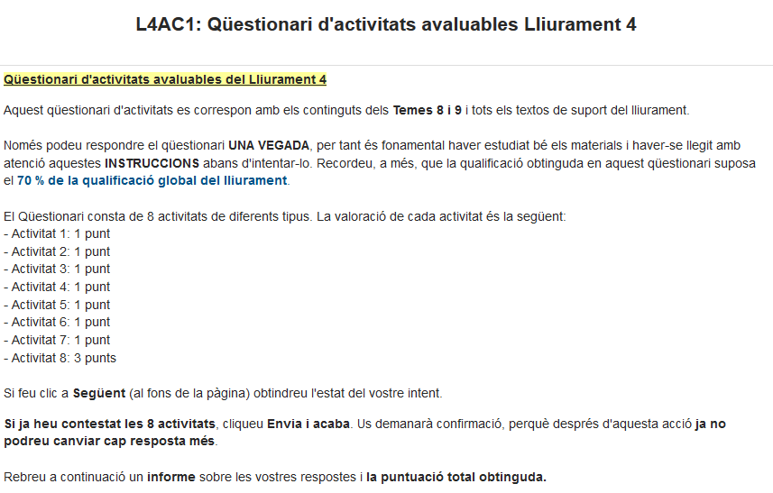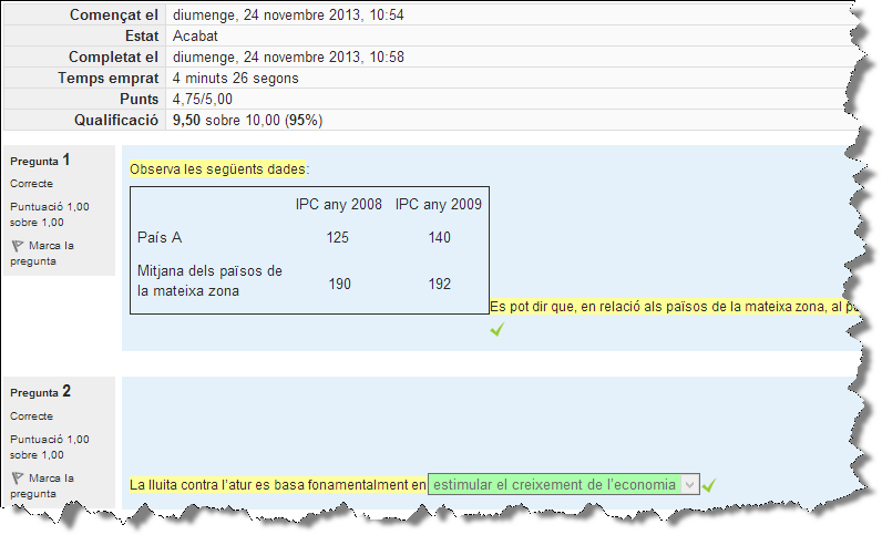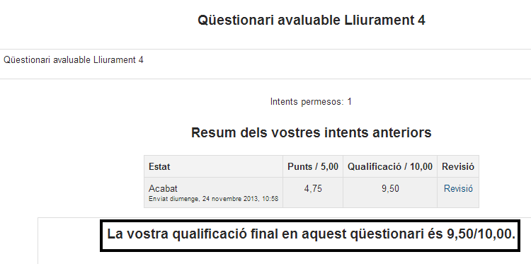 Si feu clic sobre l’enllaç Revisió podreu veure les vostres respostes i la puntuació obtinguda en cadascuna d’elles.