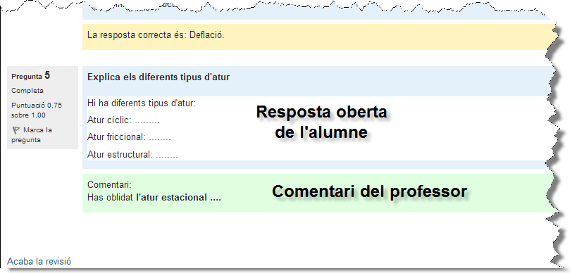 I si ara feu clic sobre l’enllaç Revisió veureu la puntuació i el comentari del professorat a la pregunta oberta: