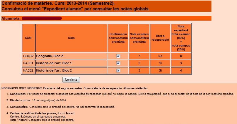 En aquesta entrada trobareu tota la informació relativa als vostres exàmens, des de les dades personalitzades de la vostra convocatòria als exàmens fins a les qualificacions obtingudes.