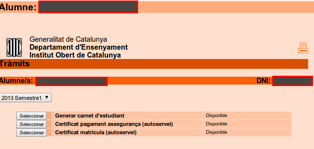 Des d’aquesta pantalla podreu generar-vos una sèrie de documents de forma automàtica, en forma d’autoservei, i sense necessitat de demanar-ho a la vostra persona tutora.