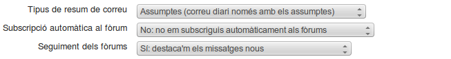 - Subscripció automàtica al fòrum: No, no em subscriguis automàticament als fòrums