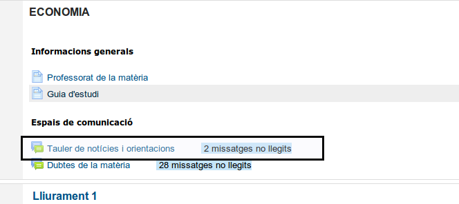 - És l’espai on el professorat de la matèria us deixa els missatges i avisos importants.