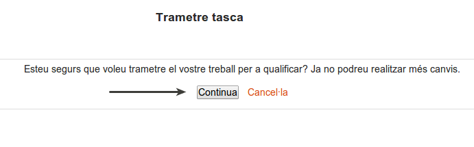 Abans d’enviar-la, però, ens apareixerà un missatge de confirmació. Per enviar la feina toquem Continua: