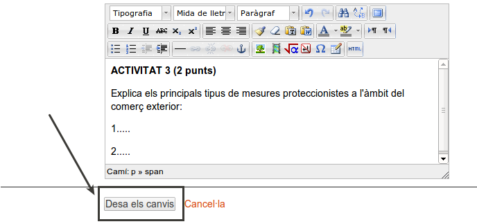 El botó Desa els canvis no envia la feina al professorat per corregir sinó que simplement la guarda per a una propera sessió de treball.