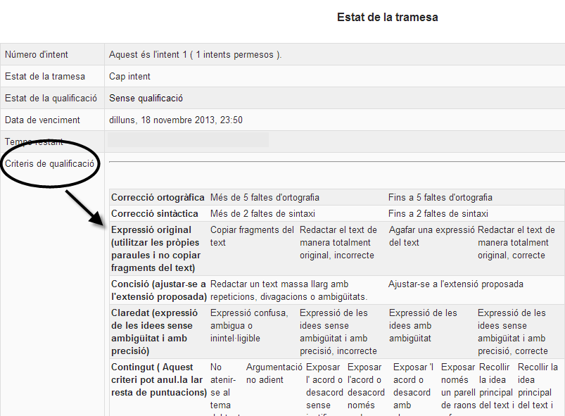 També podeu trobar els criteris de qualificació a la informació que trobareu quan feu clic en una tasca o qüestionari
