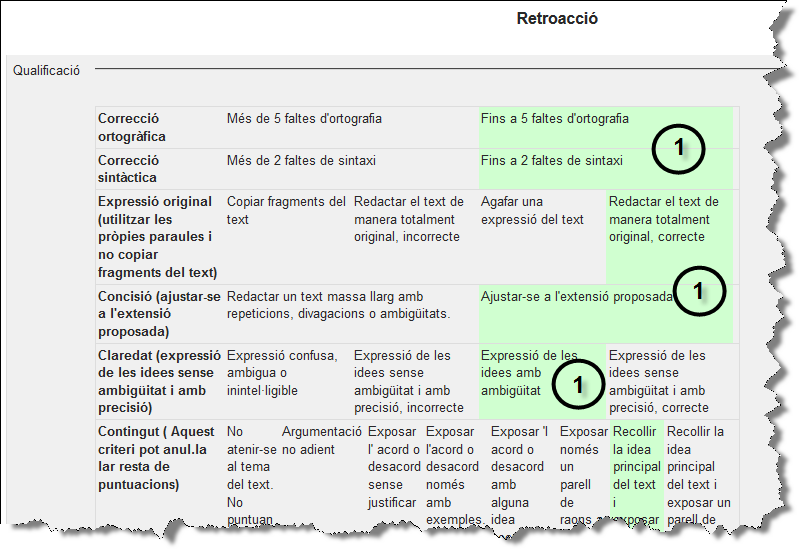 Si la tasca s’avalua amb una graella de qualificació veureu: