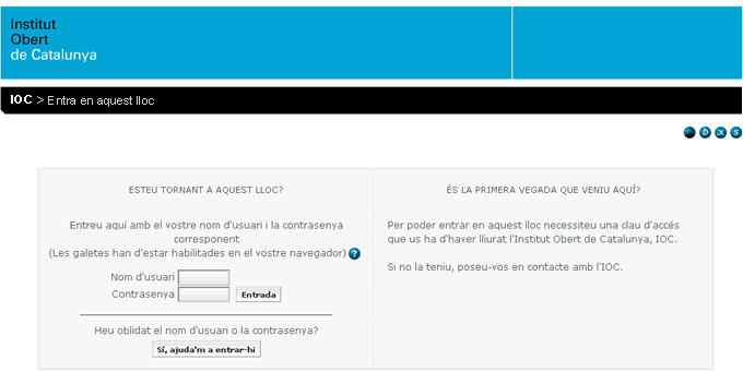 En qualsevol dels casos, arribareu a la portada del campus IOC, completament similar a la següent: