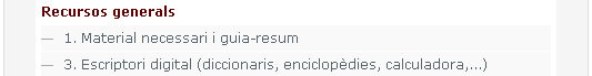 Com sabré les activitats a fer cada quinzena?  Del material didàctic que s'utilitzarà durant el curs en cada matèria matriculada sou informats en la secció 0 de la matèria, apartat de Recursos generals:
